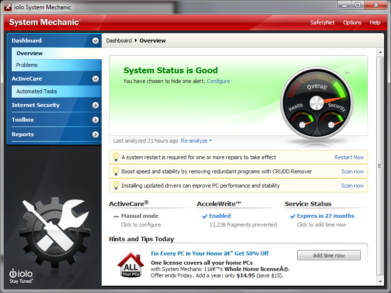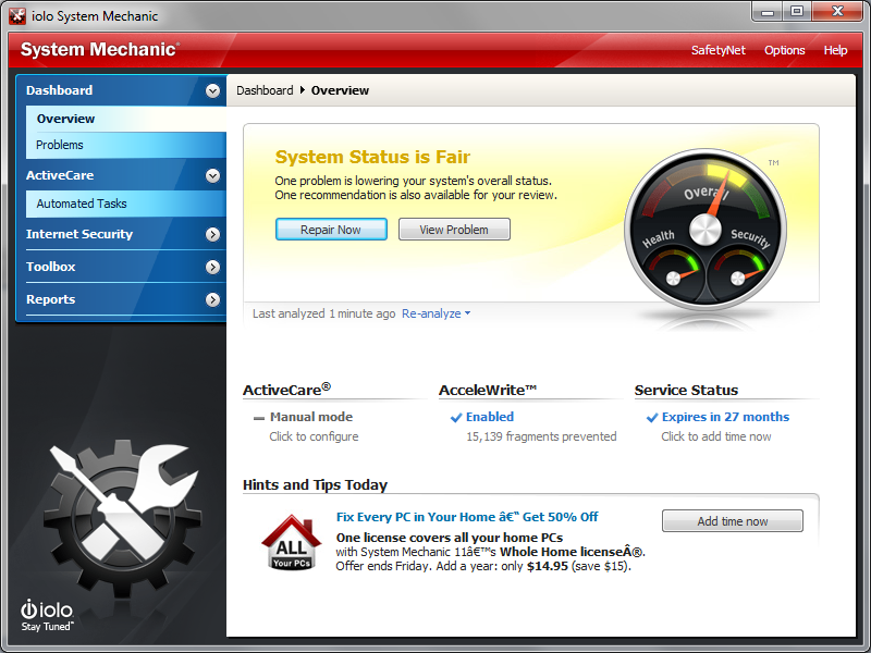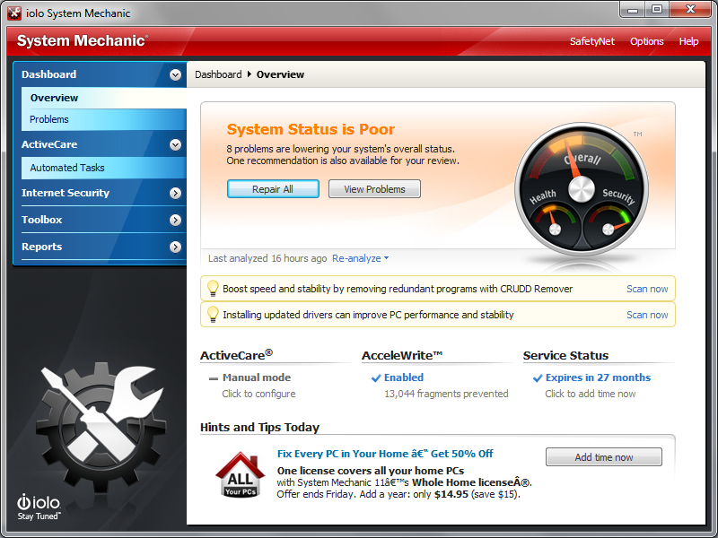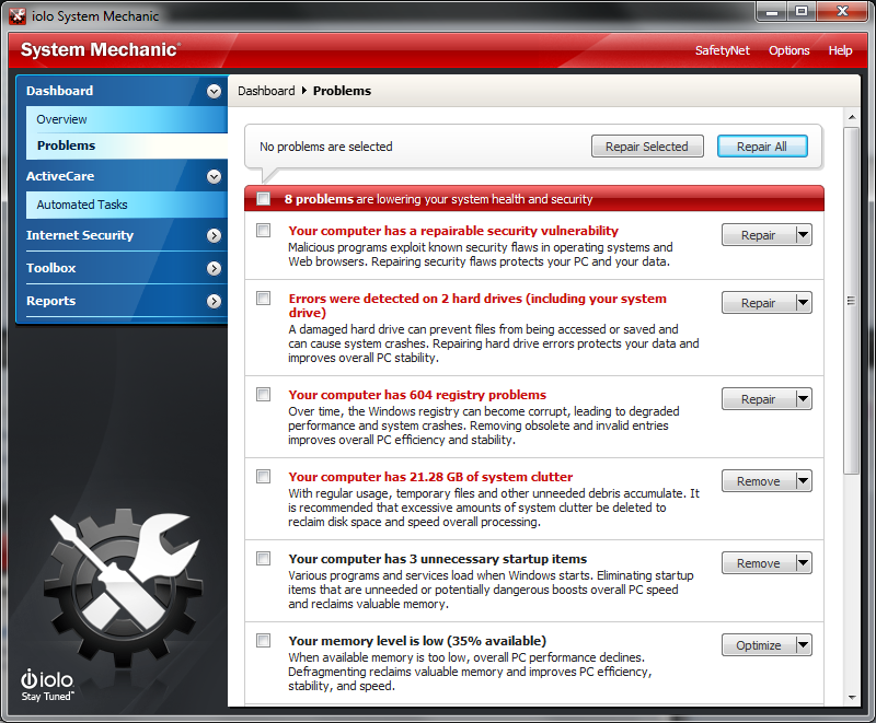 iolo System Mechanic is PC program which automatically fixes errors, optimizes performance, and helps keep your computer up-to-date.