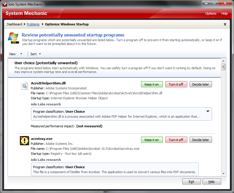 Advanced users may need to consider their options. System Mechanic’s sometimes lack of advanced information is a huge negative and will frustrate many advanced users. However, the benefit of the information shown in the start-up program optimizer and in a few other key locations, makes up for the difference and saves countless hours that would be spent researching. When shown, the information given by System Mechanic is a godsend.